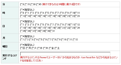 | 金曜日のの2:15に1回実行 | 15 | 2 | * | * | 金 |