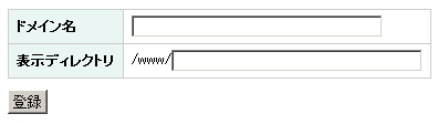 | 表示ディレクトリ | このドメインでアクセスされたとき、どのディレクトリを表示するのか、アップロードするディレクトリ名を入力します。ドメイン別に表示するフォルダを変える必要が無い場合は、そのまま空欄にしてください。 |