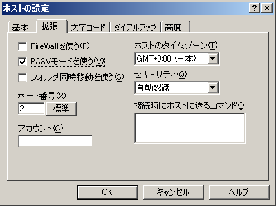 拡張タブをクリックして、「PASVモードを使う(V)」をチェックします