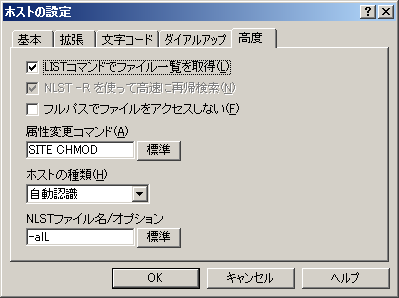 高度タブをクリックして、「LISTコマンドでファイル一覧を取得(L)」をチェックします