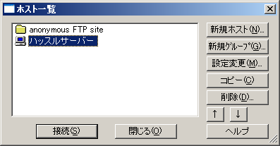 ホストの設定名をハッスルサーバー にしましたので、この名前が表示されています。このアイコンを選択して接続ボタンを押します。