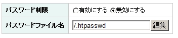 ※パスワードファイルとは、パスワードを記録するためのファイルのことです。通常、/.htpasswd から変更する必要はありません。このパスワードファイル名を変更し、編集ボタンを押すと、ファイルが上書きされますのでご注意ください