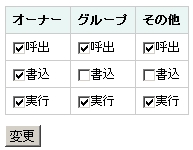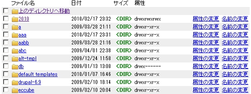 ファイル・フォルダの右側にある、「属性変更の変更」をクリックすると、 ファイル・フォルダの属性(パーミッション)の変更ができます。