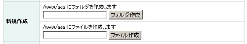 ファイル・フォルダ名を入力して、作成と書かれたボタンを押すと、ファイル・フォルダが作成されます。ファイルは中身のない0バイトのファイルです。