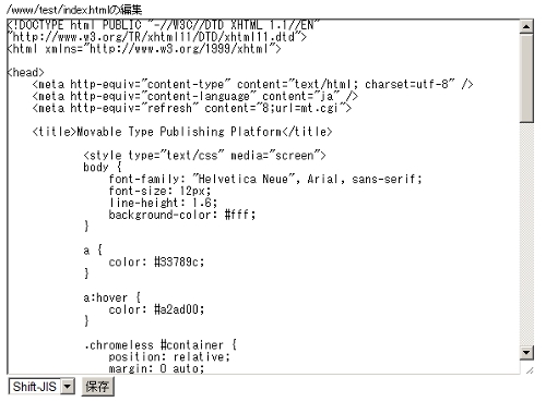 内容を変更し、文字コードを指定して、保存をすると、ファイルの ダウンロード、アップロードをすることがなく、テキストファイルの編集が できます。