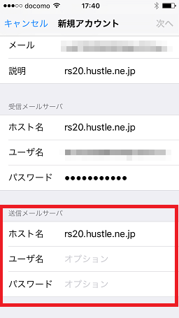 ※送信メールサーバーはユーザー名・パスワードを空白にしないと接続できない場合がございます。