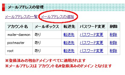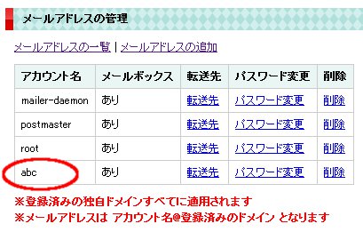 なお、初期登録時にあらかじめ登録されている、mailer-daemon,postmaster,root は、必要のない方は削除していただいて、構いません。