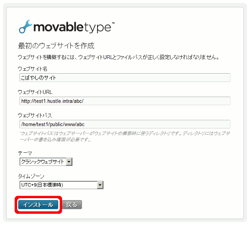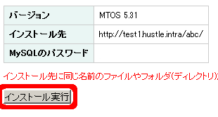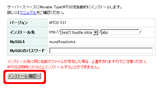 ご希望のインストール先を入力します。例: http://test.hustle.ne.jp/abc/ |
