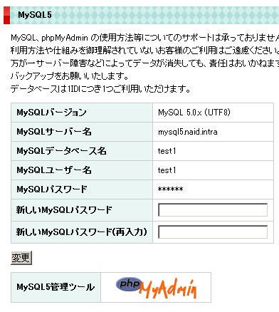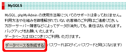 MySQL、phpMyAdmin の使用方法等についてのサポートは承っておりません。 利用方法や仕組みを御理解されていないお客様のご利用はご遠慮ください。