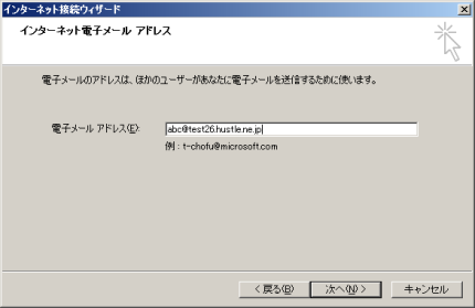 メールアドレスを入力します。コントロールパネルで作成した、メールアドレスをそのまま入力します。