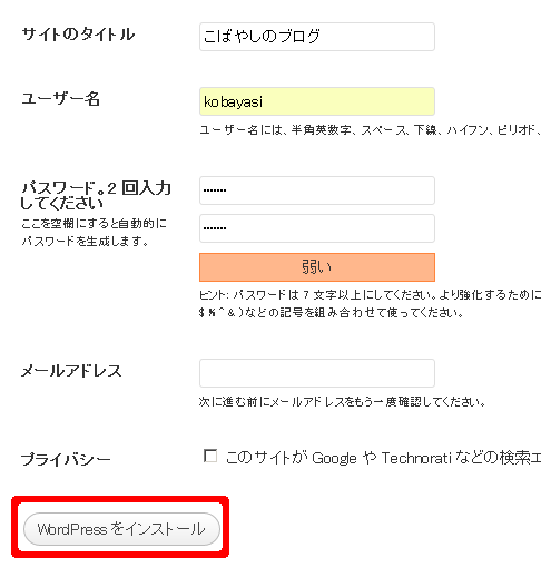 WordPressの自動インストール