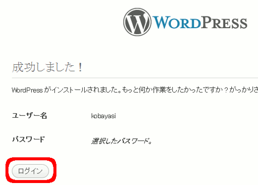 設定完了です。引き続き、ログインします。