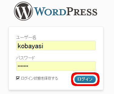 はじめてのログインです。設定したユーザー名と、パスワードを入力してください。